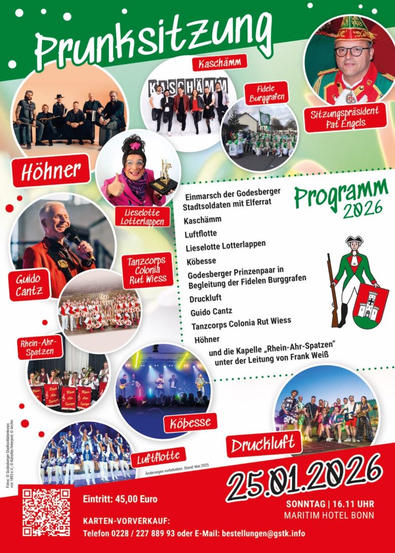 Kommt und feiert mit uns auf unserer Prunksitzung 2026 im Maritim Bonn!